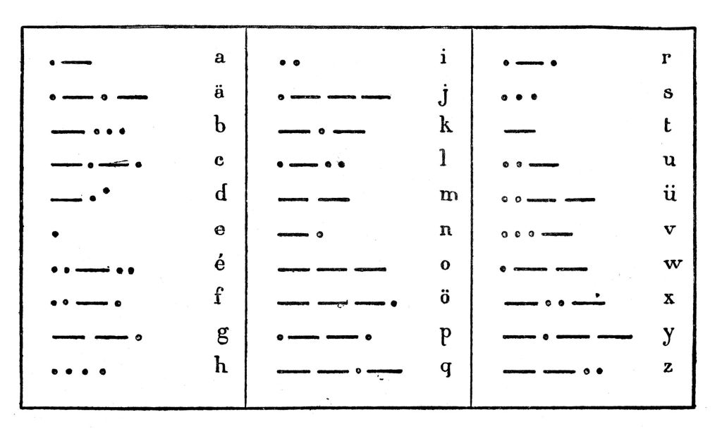 Pero el telégrafo tal como lo conocemos fue patentado ese mismo 1837 por el norteamericano Samuel Morse junto con su ayudante Alfred Vail, que fue el inventor del instrumento que recogía los mensajes y tantas veces hemos visto en las películas del oeste: una tira de papel que iba imprimiendo puntos y rayas a medida que avanzaba el mensaje. Porque además del aparato, Morse tuvo la idea de sustituir las letras y números por un nuevo lenguaje, el código Morse.