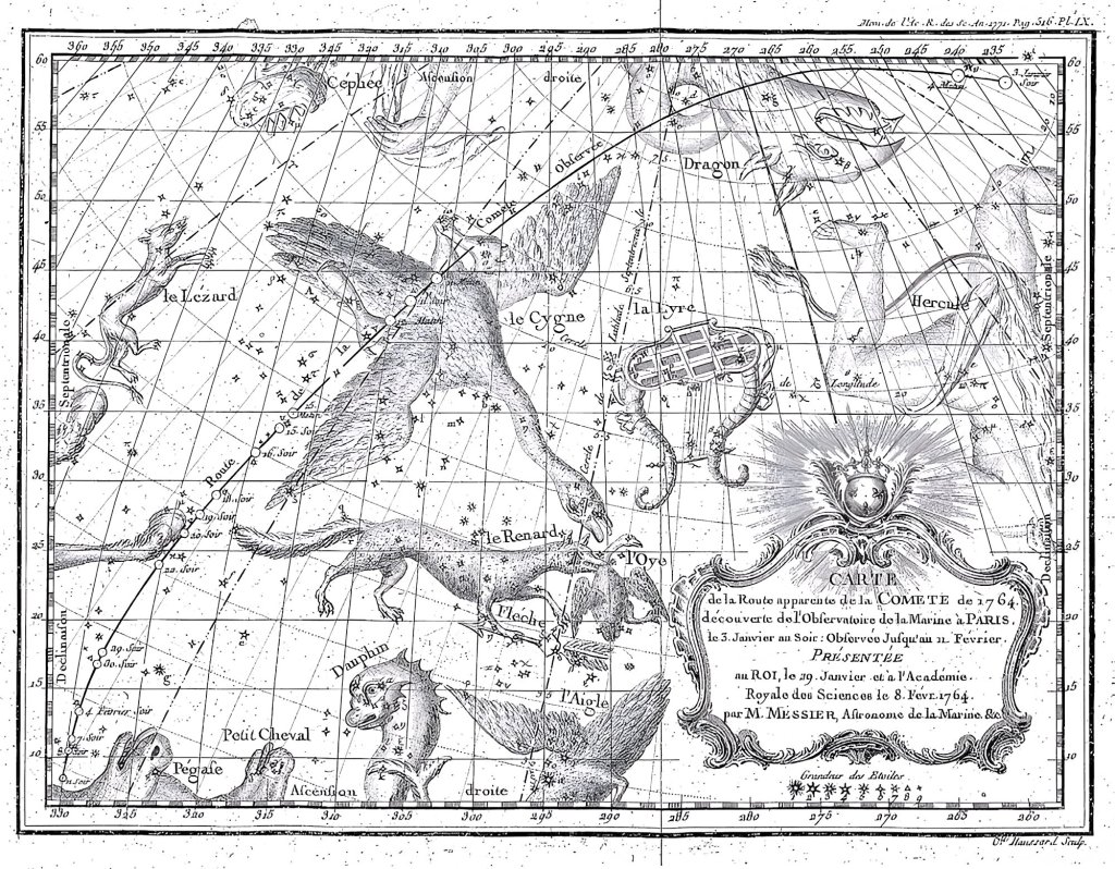 En 1784 publicó su catálogo con 103 manchas borrosas del cielo que corresponde, no sólo a nebulosas, sino a galaxias y cúmulos de estrellas. Todos ellos sin ningún interés para el francés, que sólo tenía ojos para los cometas. Su pasión era tan grande que el rey Luis XIV le llamaba el hurón de los cometas.