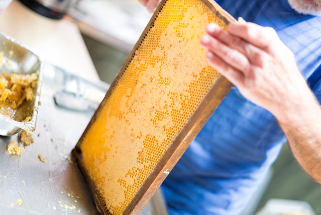 La miel que acompaña muchos de nuestros postres es, en su mayor parte, néctar evaporado, aunque también tiene una serie de compuestos que inicialmente no formaban parte del néctar. Todo el proceso empieza cuando la abeja liba un poco de néctar, luego recoge el polen con la boca, lo empasta con ese néctar y lo guarda en la bolsa recoge-polen del último par de patas. Muchas veces el cuerpo de la propia abeja queda impregnado de polen que queda adherido al pelo del cuerpo y, cuando está de regreso a la colmena, sus patas están trabajando afanosamente recogiendo ese polen y llevándolo hacia la bolsa: una carga completa oscila entre 10 y 15 miligramos.