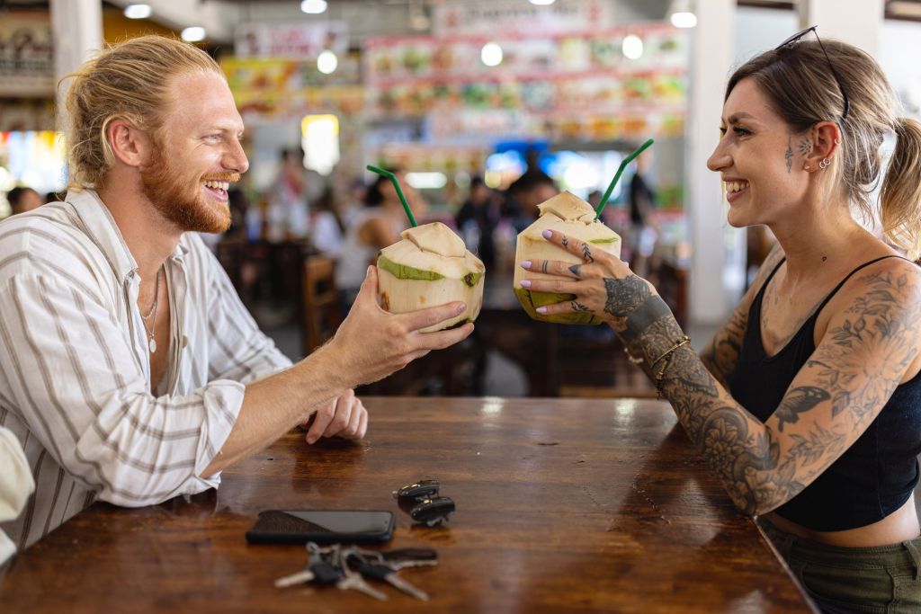 Cuando Vasco de Gama anduvo por aquellos parajes el fruto del Cocos nucifera, una palmera esbelta que alcanza los 25 metros de altura, le recordó a sus marinos la forma de la cabeza de un mono, macaco en portugués –y abreviado coco–, de ahí su nombre. Si tiene que escoger un lugar para vivir la palmera prefiere los terrenos arenosos, aunque también admite alturas de 600 metros, y soportan tanto lluvias torrenciales como terribles periodos de sequía. Empieza a dar sus frutos cuando tiene 5 años, aunque su mejor momento es a los 15. Colgados de largos racimos, un cocotero produce anualmente entre 50 y 100 frutos que tardan un año en madurar.