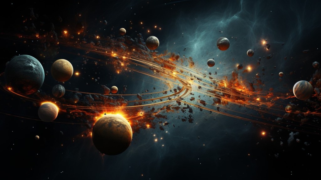 Esta intrincada danza de cuerpos celestes es un testimonio de las fuerzas fundamentales que gobiernan nuestro universo.