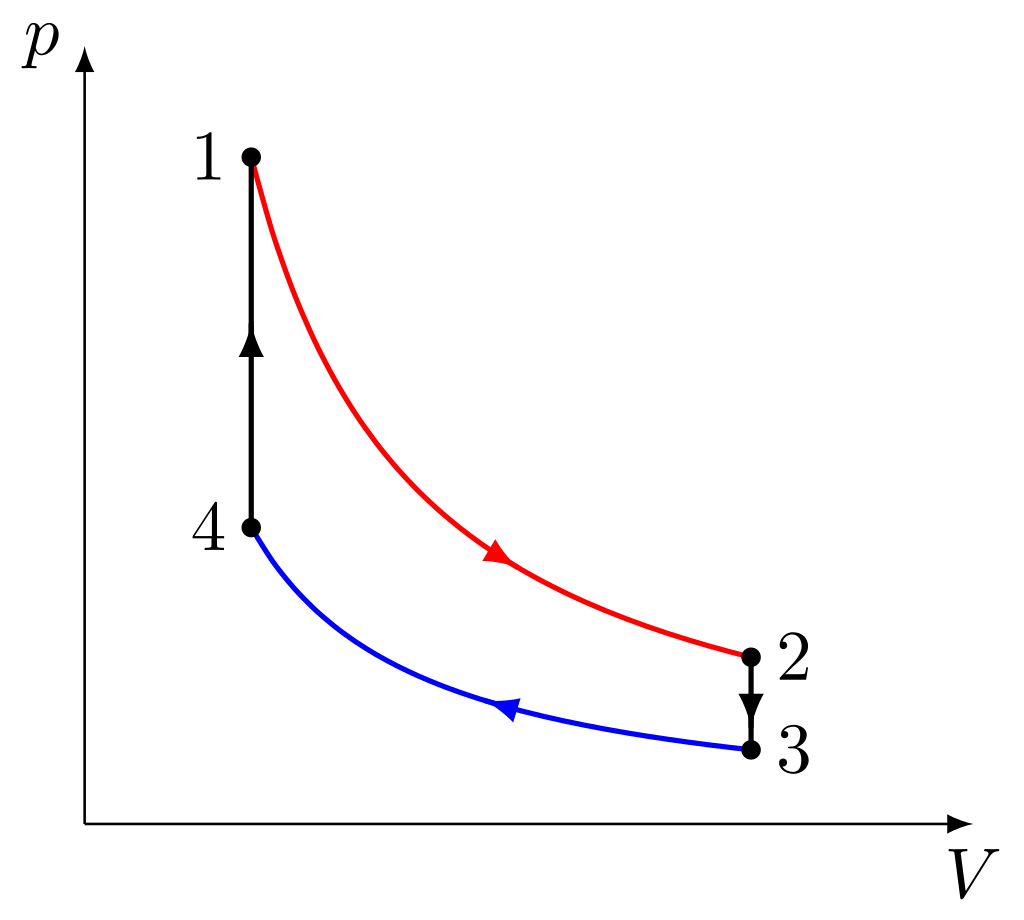 En 1769 James Watt patentaba la primera máquina de vapor realmente eficaz. El éxito fue tal que hacia 1795 Watt la había instalado en todos los procesos manufactureros de Inglaterra. Pero gran parte del éxito de la revolución industrial residió en un simple diagrama, una representación en los ejes coordenados de la presión y el volumen que tiene el gas en cada instante. Ideado por Watt y su ayudante John Southern y que bautizaron como diagrama indicador, fue de tal utilidad a la hora de mejorar la eficiencia de su máquina de vapor que el propio Watt lo guardó como parte del secreto comercial. Aunque fue hecho público en 1822 en la revista Quarterly Journal of Science, su verdadero significado seguía siendo un misterio. Hubo que esperar a 1834 cuando el francés Émile Clapeyron lo usó para explicar el llamado ciclo de Carnot, base teórica de cualquier máquina térmica (como la máquina de vapor o un frigorífico). El punto clave era que el área encerrada bajo la curva dibujada en el diagrama correspondía al trabajo realizado por la máquina. Fue a partir de entonces cuando el diagrama presión-volumen o diagrama p-V, como se le conoce, se convirtió en una de las herramientas más importantes de análisis de la termodinámica, la ciencia del calor.