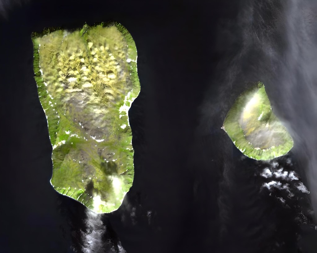 De este modo, la isla occidental (Diómedes Mayor, Imaqliq, Nunarbuk o Ratmánov), deshabitada, pertenece a Rusia. La oriental (Diómedes Menor, Krusenstern o Inaliq), en la que según el último censo viven 82 personas viven poco más de 160 personas pertenecientes a la comunidad esquimal iñupiaq, pertenece a Estados Unidos. Ambas islas está separadas por apenas 4 kilómetros -en invierno quedan unidas por los hielos y se pude pasar de una a otra caminando, o mejor aún, esquiando-, pero la diferencia horaria entre ambas es de 21 horas (20 en verano). Por eso a veces se las llama la Isla del Ayer (Diómedes Menor) y la Isla del Mañana (Diómedes Mayor).