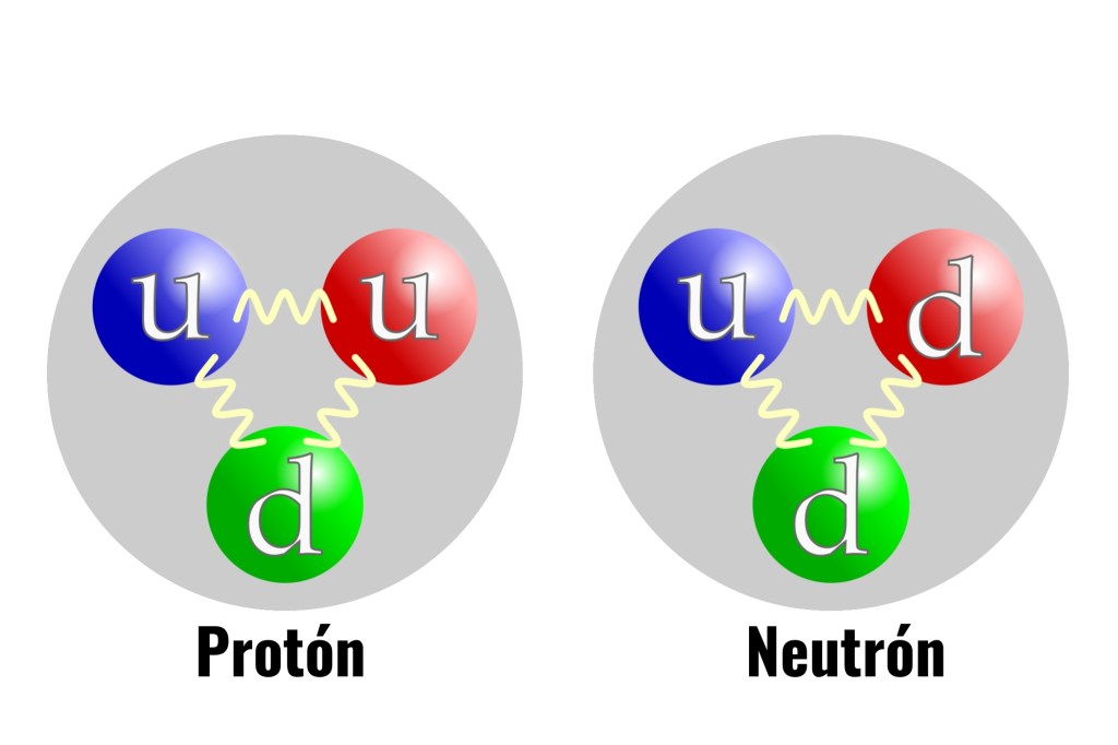 Los quarks son uno de los tipos de partículas que conocemos. Existen seis tipos diferentes y los dos más ligeros, conocidos como “up” y “down”, forman los protones y neutrones al combinarse de tres en tres. Los quarks tienen carga eléctrica, como podría tenerla un electrón, pero además tienen otro tipo de carga, la correspondiente a la interacción nuclear fuerte. Esta carga puede tomar tres valores diferentes y es muy diferente a la carga eléctrica. Las partículas con carga eléctrica pueden atraerse o repelerse mutuamente, según tengan carga distinta o igual, respectivamente. Para la carga fuerte de los quarks no ocurre así. La regla principal que deben seguir estos quarks es que deben agruparse con otras partículas para formar partículas compuestas que sean neutras para este tipo de carga. Es decir, deben intentar cancelar su carga con la de otras partículas. Por estas propiedades nos dimos cuenta de que no tendría sentido asignar un valor numérico. No hay un número que al sumarlo o restarlo de tres en tres nos dé cero.