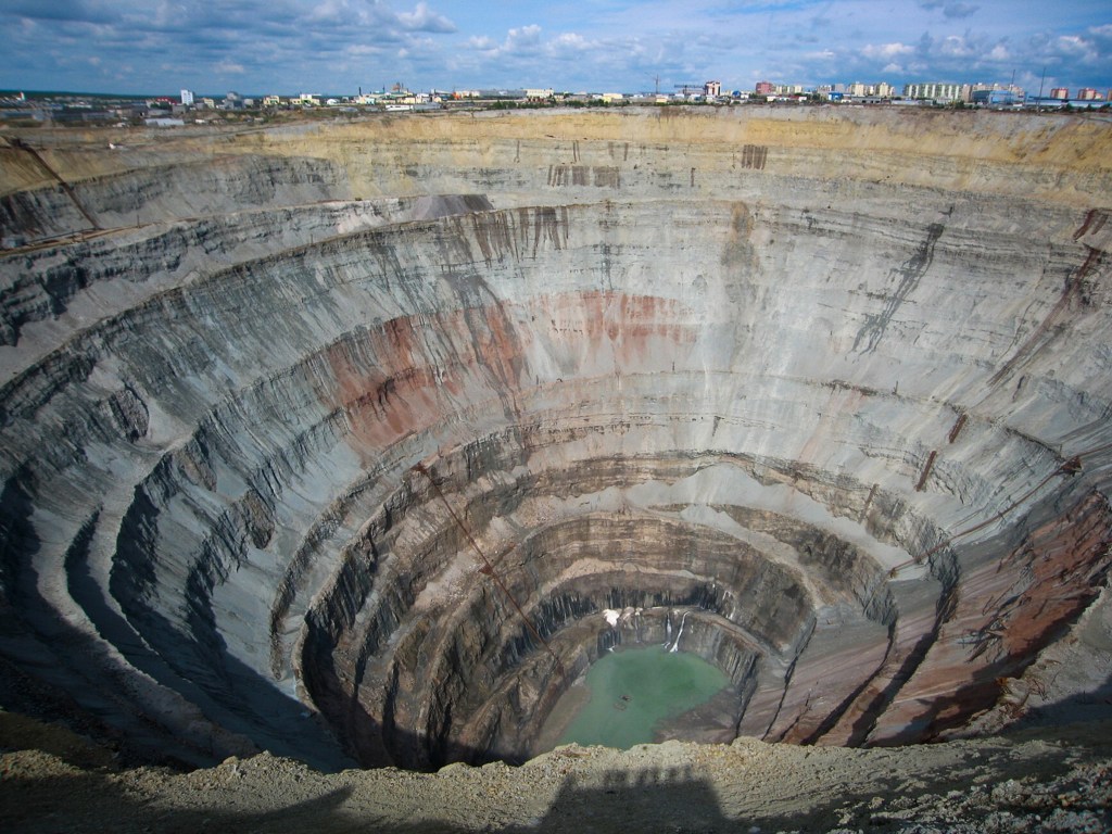 Tenemos que viajar hasta la fría región de Mirny, en Siberia, para toparnos con uno de los pozos excavados por el hombre más grande del mundo. Allí se encuentra la mina Mir, una enorme mina de diamantes de kimberlita a cielo abierto situada en la antigua República Socialista Soviética Autónoma de Yakutia, actualmente Siberia Oriental. Es, sin duda, uno de los esfuerzos mineros más ambiciosos de la historia de la humanidad. Hubo una época en la que fue el corazón de la industria de las gemas de la Unión Soviética y es una prueba más de la incesante búsqueda de tesoros escondidos bajo nuestros pies.