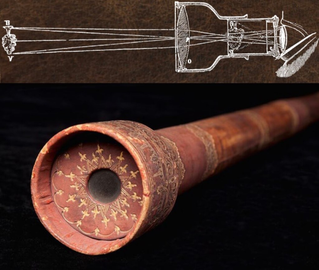 Con las pequeñas balas de cañón da cierta forma curva a los espejos, que al quitarles la película de aluminio, los convierte en lentes. Con el trípoli, una arena usada para pulir superficies, las perfecciona. La colofonia, una resina natural, la utiliza para fijar a ambos extremos del tubo de órgano las dos lentes que ha construido. Cuando lo tiene terminado, esta misma noche mira al cielo. Con ese gesto, la historia de la ciencia cambiaría para siempre.