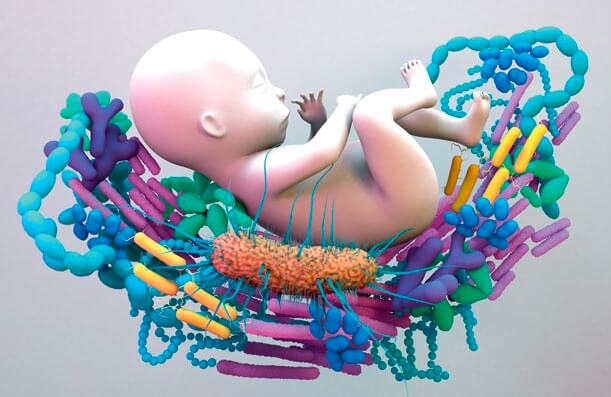 La microbiota cambia con la edad. Desde el mismo momento del nacimiento, comenzamos a reunir a nuestros propios microbios. La composición de nuestra microbiota va a depender de muchos factores, de cómo hayamos nacido, de la dieta que tuvimos cuando éramos bebés, del uso de antibióticos cuando éramos pequeños, del ambiente en el que crecimos e incluso de los que vivían con nosotros o de si tuvimos mascotas. El primer contacto con los microbios lo heredamos de nuestra propia madre. Durante más de un siglo hemos aceptado como un dogma que los bebés nacen estériles y adquieren sus microbios de forma vertical (directamente de la madre conforme pasan por el canal del parto) y horizontalmente (de otros humanos y del ambiente después de nacer). Sin embargo, algunos estudios recientes empleando técnicas moleculares sugieren que existen comunidades bacterianas en la placenta, líquido amniótico, cordón umbilical y el meconio en embarazos sanos sin signos de infección o inflamación. Estos descubrimientos, aunque todavía controvertidos, cambian radicalmente nuestra idea de cómo adquirimos nuestros primeros microbios: quizás no nacemos estériles, sino que ya desde que estábamos en el útero materno teníamos microbios que, lógicamente, heredamos de nuestra madre.