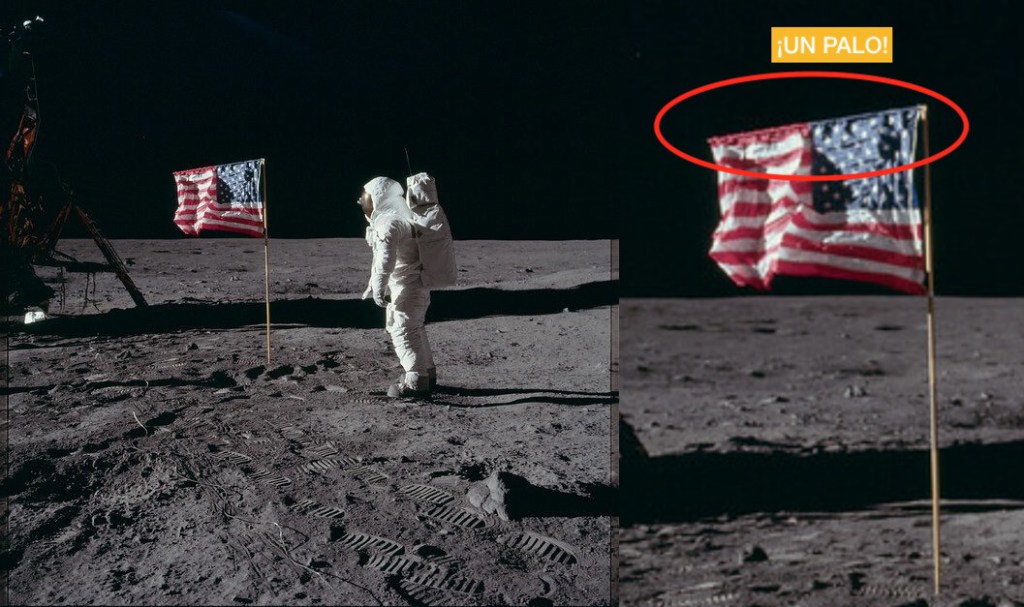 Hipótesis 6: La bandera ondea y no debería hacerlo, puesto que en la Luna no hay atmósfera y, por tanto, tampoco viento.