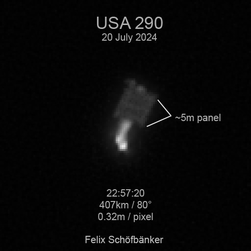 Según Schöfbänker, que subió las instantáneas a su web, 'el más nuevo es una nave espacial de quinta generación de 2021 y se llama USA 314', otro telescopio espacial que apunta a la Tierra.