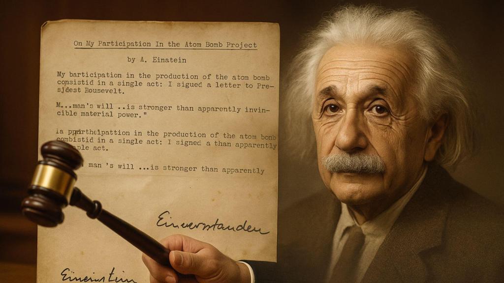 Aunque a menudo se ha pensado que Einstein fue un participante activo en el Proyecto Manhattan, este texto ofrece la aclaración más directa y personal del propio científico. En él, Einstein deja claro que su contribución fue mínima y motivada exclusivamente por el temor a que Alemania desarrollara la bomba primero.