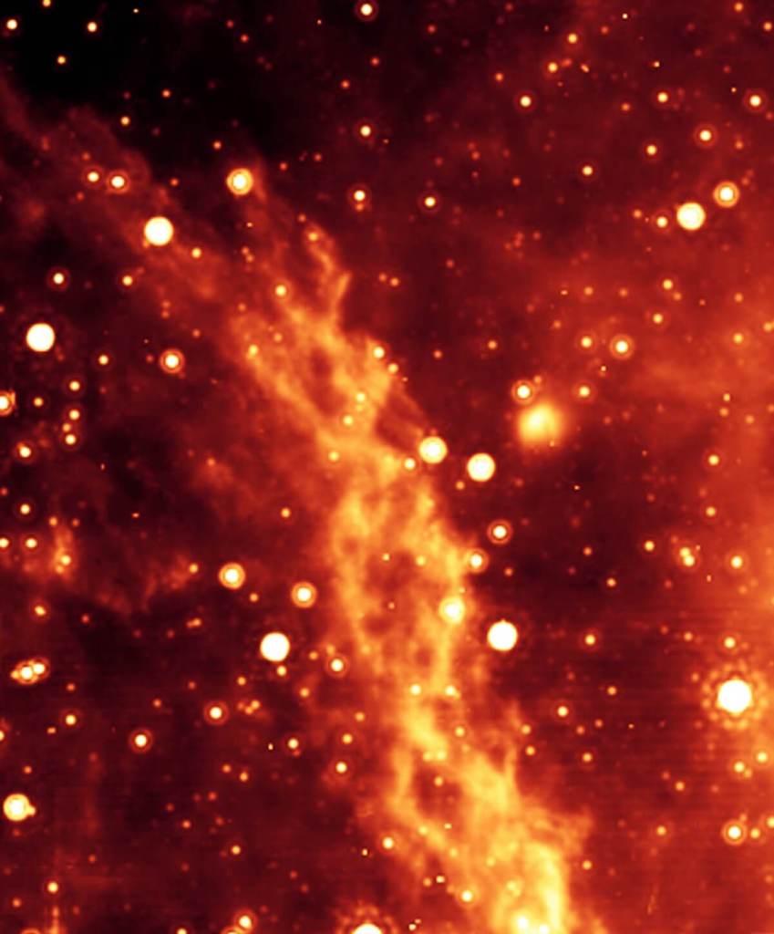 La Nebulosa de la Doble Hélice fue descubierta en 2006 gracias al telescopio espacial Spitzer, y rápidamente llamó la atención por su forma inusual: dos filamentos retorcidos que recorren unos 70 años luz de largo cerca del centro galáctico. Desde entonces, los astrofísicos han debatido sobre su origen, considerando que el plasma que forma esta estructura está fuertemente influido por el campo magnético del agujero negro supermasivo que habita el centro de nuestra galaxia.
