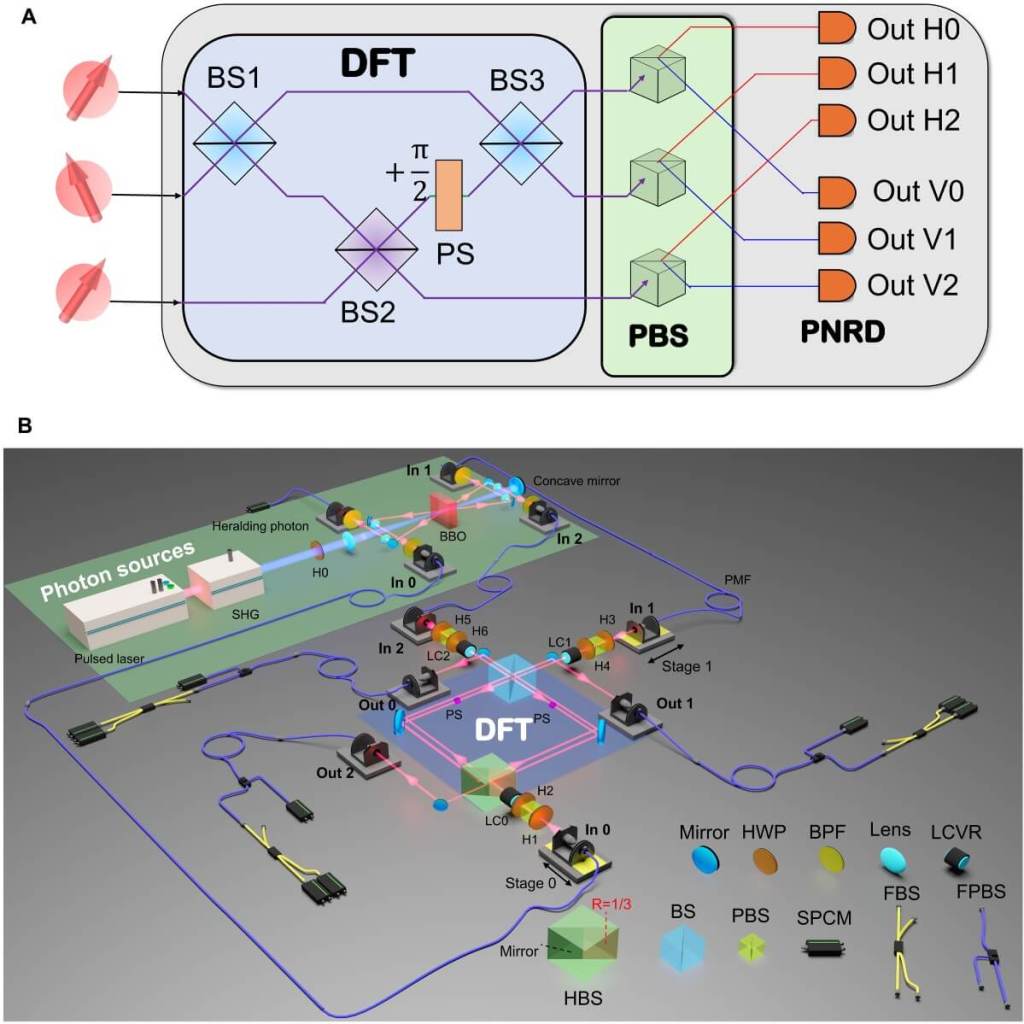 El dispositivo clave del experimento es un circuito óptico que realiza una transformada de Fourier discreta (DFT) sobre los modos de luz. Gracias a este diseño, se puede aprovechar la simetría cíclica de los estados W para que cada configuración del sistema conduzca a un resultado medible único. En palabras del artículo: “la circuitería óptica puede distinguir entre 2N resultados ortogonales del estado W con una eficiencia del 100%”.
