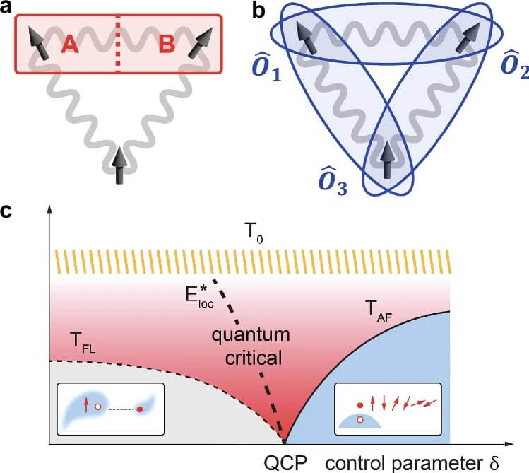 Los cálculos del equipo muestran que el entrelazamiento no solo cambia de cantidad, sino también de estructura: ya no está confinado a pares de partículas, sino que se distribuye entre muchos electrones, de forma que “la entropía de entrelazamiento es máxima y las correlaciones de tipo Kondo desaparecen”.