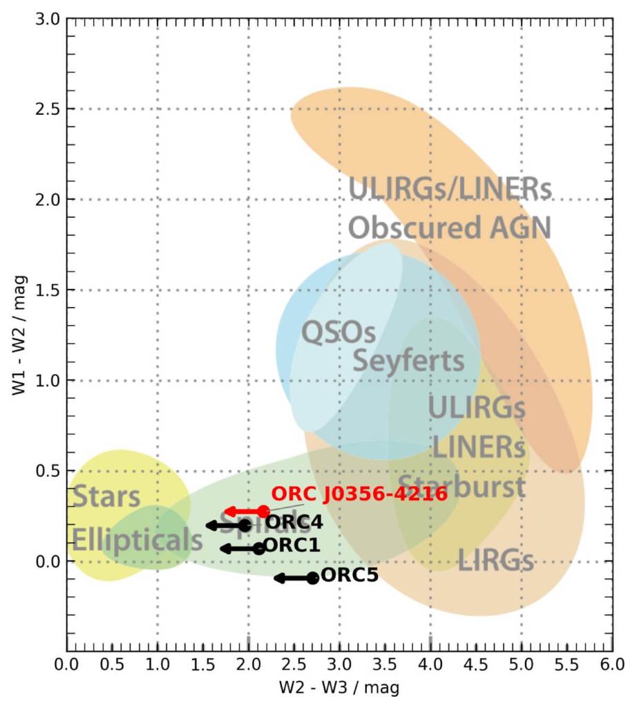El ORC estudiado ahora se encuentra en la galaxia WISEA J035609.67–421603.5, a un corrimiento al rojo de 0,494, es decir, a una distancia de miles de millones de años luz. Su tamaño lo convierte en un auténtico coloso cósmico, comparable a varias veces el diámetro de la Vía Láctea.