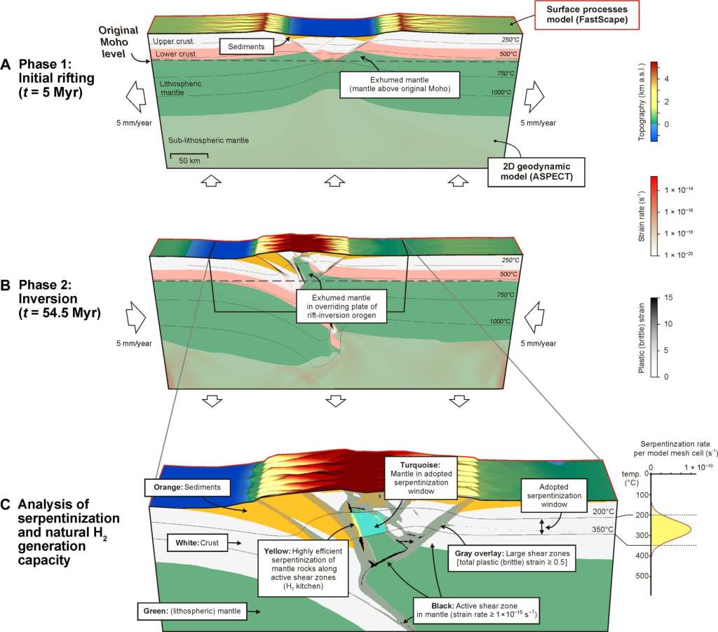 - Zwaan et al., Rift-inversion orogens are potential hot spots for natural H₂ generation, Science Advances, 11, eadr3418 (2025). DOI: 10.1126/sciadv.adr3418.