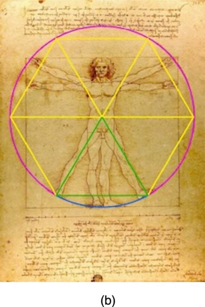 Este triángulo, que hasta ahora había pasado casi desapercibido o interpretado como una simple coincidencia visual, es para Mac Sweeney la clave para entender el método geométrico detrás del dibujo. En su análisis, el triángulo formado por los pies del hombre y su entrepierna genera una relación numérica que ronda el 1,64-1,65, muy cercana a un valor conocido como la razón tetraédrica, que es aproximadamente 1,633.