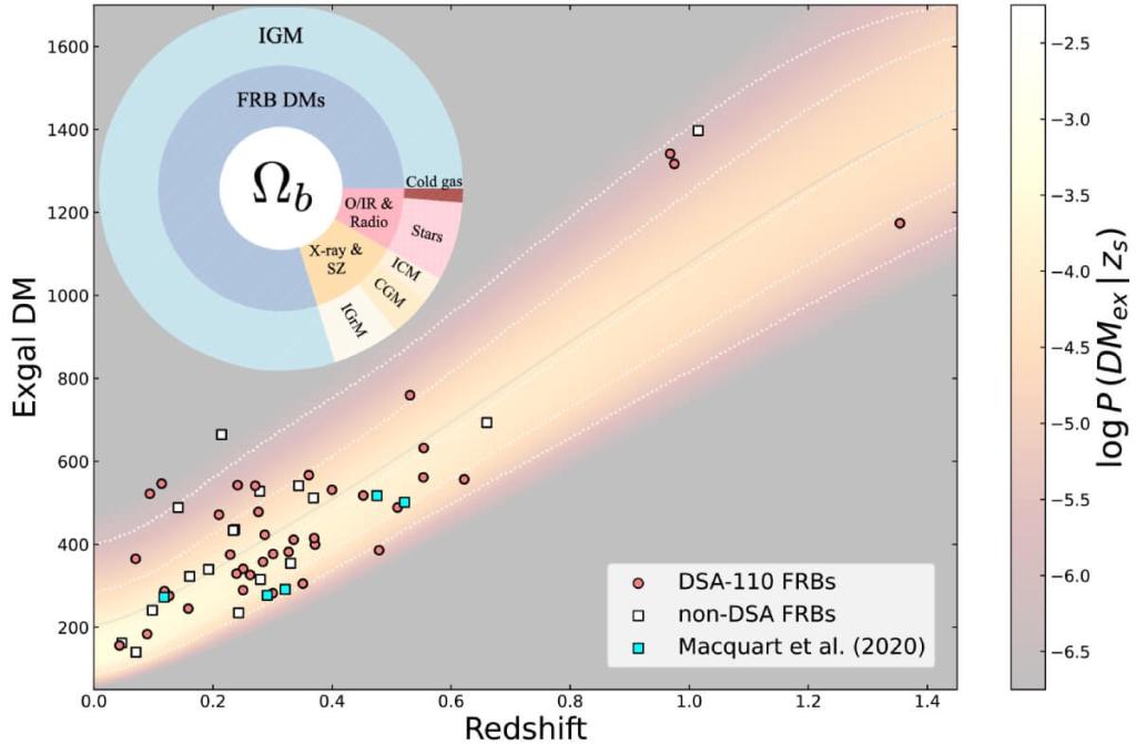 El estudio publicado en Nature Astronomy demuestra que las FRBs pueden ser tan eficaces como el fondo cósmico de microondas para obtener parámetros fundamentales del universo, como la densidad de materia bariónica (Ωb). De hecho, el valor medido por los autores, Ωb h70 = 0.049 ± 0.003, coincide con el estimado por observaciones del universo temprano .