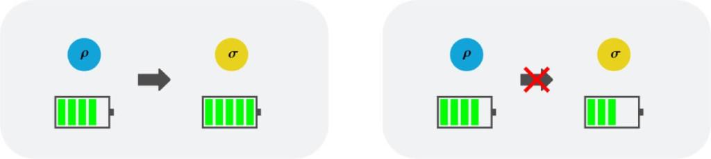 Además, el mecanismo es tan potente que permite el diseño de protocolos que, en el límite asintótico, logran que la transformación y su inversa se equilibren perfectamente: “R(ρ → σ) · R(σ → ρ) = 1”, es decir, se puede ir de un estado al otro y regresar sin pérdidas.