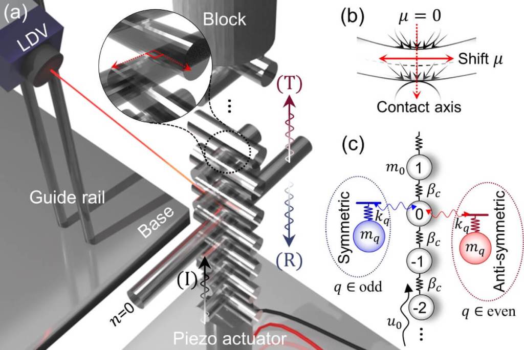 Esto se conoce como estado ligado en el continuo, y lo novedoso del estudio es que se logró en un solo objeto compacto. El artículo explica que “estos modos ligados surgen en un sistema mecánico altamente ajustable hecho de cristales granulares cilíndricos” y que el secreto está en cómo se conectan los cilindros entre sí.