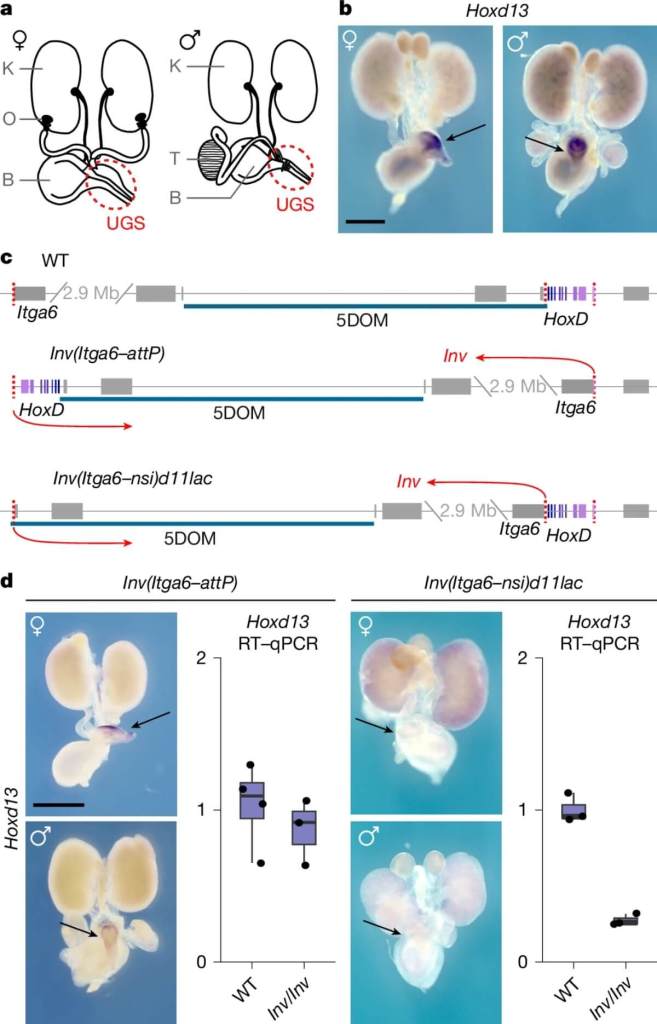 Uno de los focos del estudio fue el gen Hoxd13, uno de los más importantes del grupo Hox. En mamíferos, su activación es crucial tanto para la formación de los dedos como para el desarrollo del seno urogenital. En peces cebra, se detectó que este gen también se expresa con fuerza en la región cloacal durante el desarrollo embrionario. Cuando los científicos eliminaron la región 5DOM, la expresión de Hoxd13 desapareció completamente en la cloaca, pero no en las aletas.