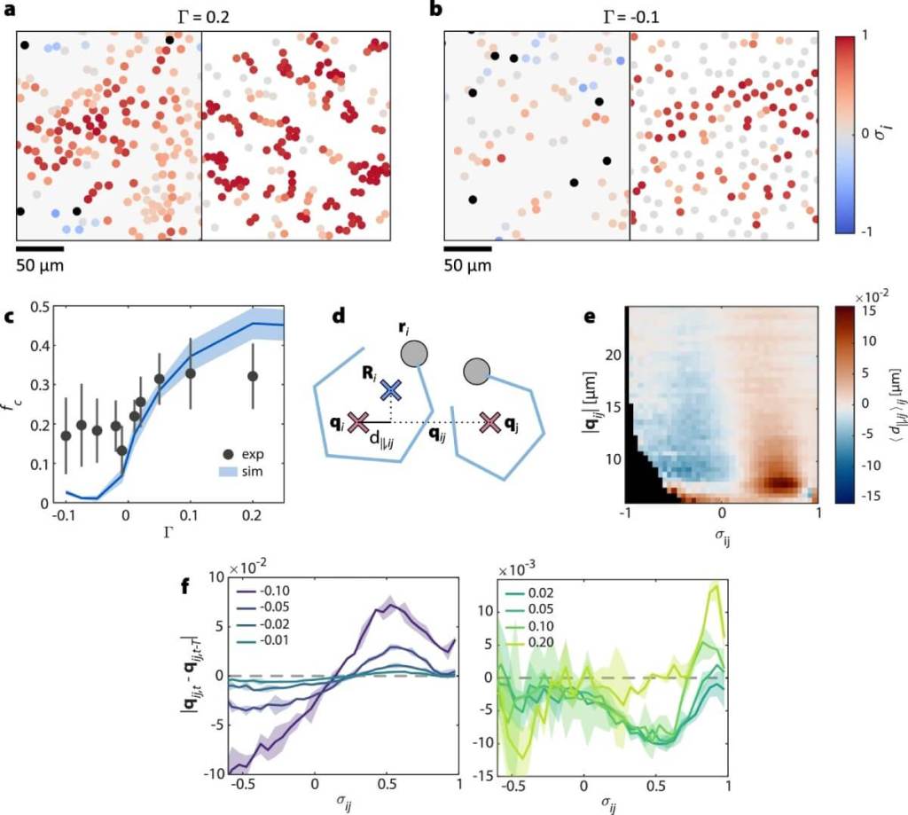 Los investigadores lo comprobaron midiendo el desplazamiento medio de cada partícula respecto a su punto de referencia. Para aquellas con fases sincronizadas, el desplazamiento tendía a acercarlas a sus vecinas; en cambio, para partículas desfasadas, el desplazamiento era en sentido opuesto.