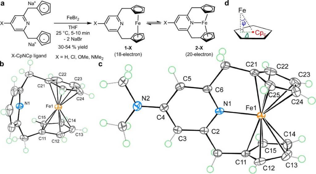 Según el artículo original, “reportamos la formación de derivados de ferroceno con 20 electrones a través de una coordinación reversible del nitrógeno a análogos de 18 electrones” . Esta coordinación, aunque en principio contraria a las predicciones clásicas, se logró gracias a un diseño preciso del entorno molecular, que favorece la interacción sin alterar la disposición típica de los anillos Cp (ciclopentadienilo).