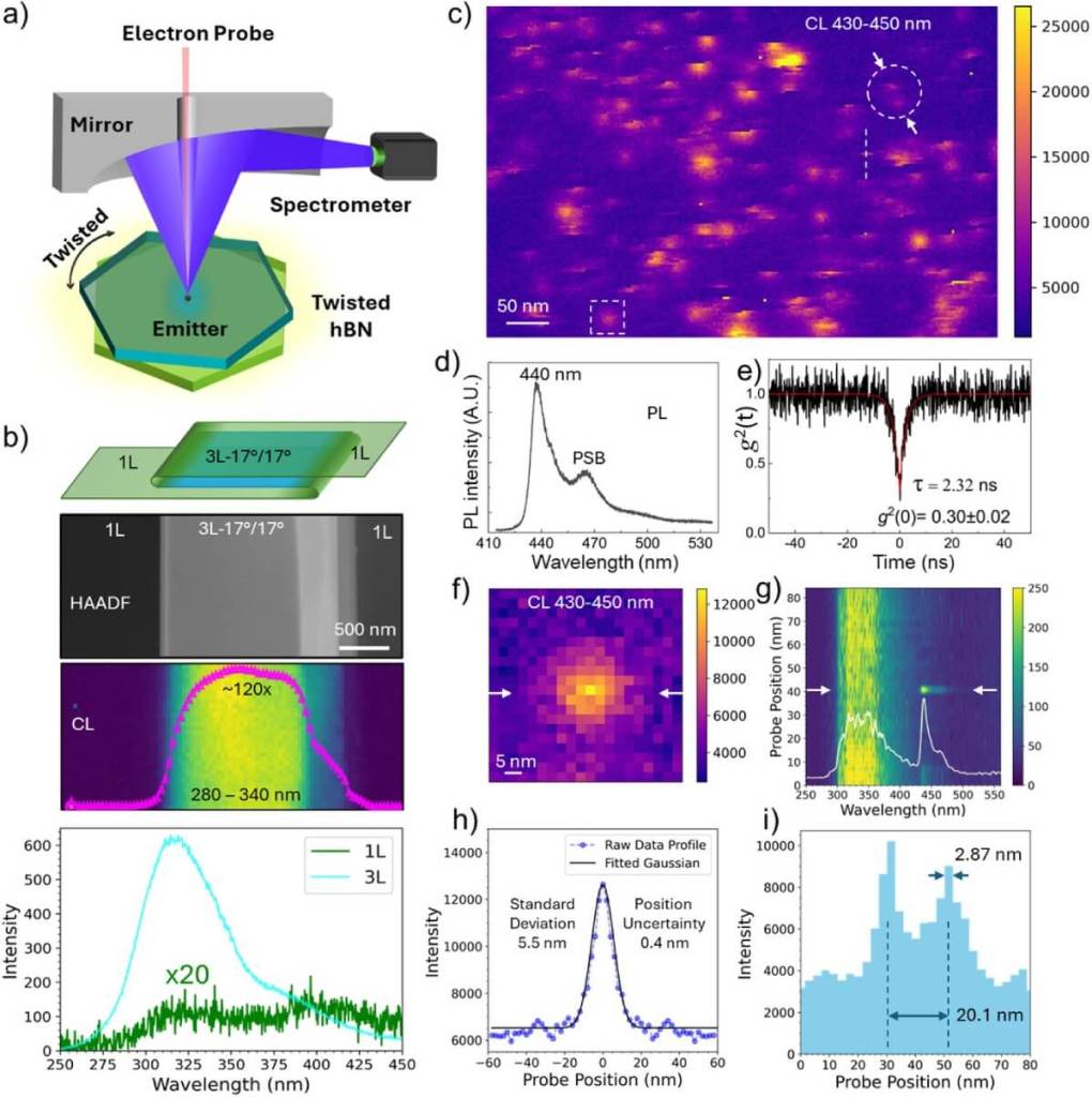 Este efecto, llamado catodoluminiscencia mejorada en interfaces torcidas, permite obtener imágenes detalladas de los emisores con una precisión de localización inferior a 1 nanómetro. Gracias a esto, pudieron analizar individualmente emisores que antes eran invisibles entre la multitud de defectos materiales. En el artículo científico explican que con esta técnica fue posible realizar un “mapeo hiperespectral” que distingue claramente emisores separados por tan solo 20 nanómetros.