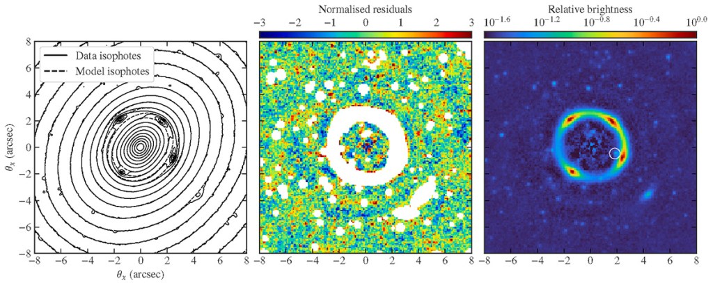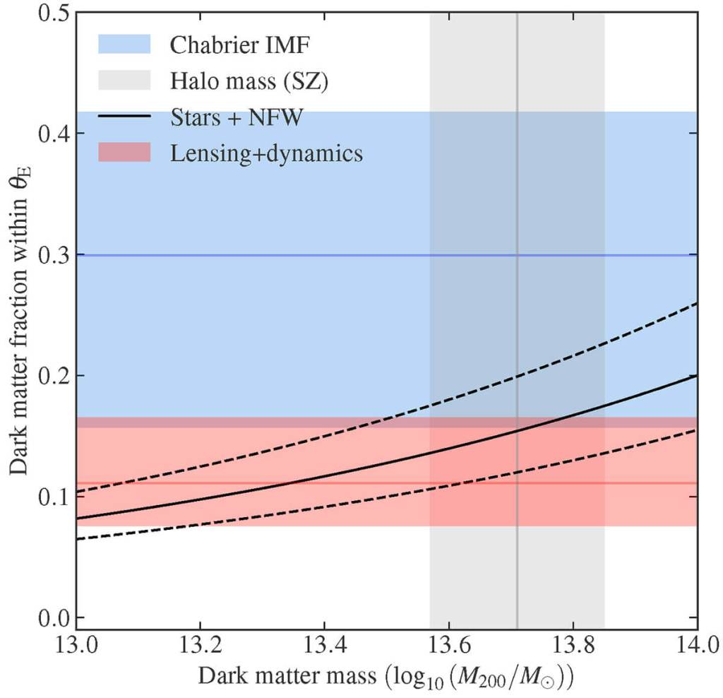 Por otra parte, el estudio de este sistema ha permitido medir con gran precisión la cantidad de materia oscura en el centro de la galaxia, encontrando que representa solo un 11 % de la masa dentro del radio de Einstein, un dato que desafía algunos modelos actuales sobre la distribución de esta materia en galaxias masivas.