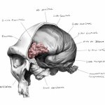 En una calavera humana se distinguen dos partes: la región craneal, que protege el cerebro y proporciona una base sólida para la inserción de los músculos de la cara y de la boca; y la región facial, donde se localizan los ojos, la nariz, los oídos y la boca.