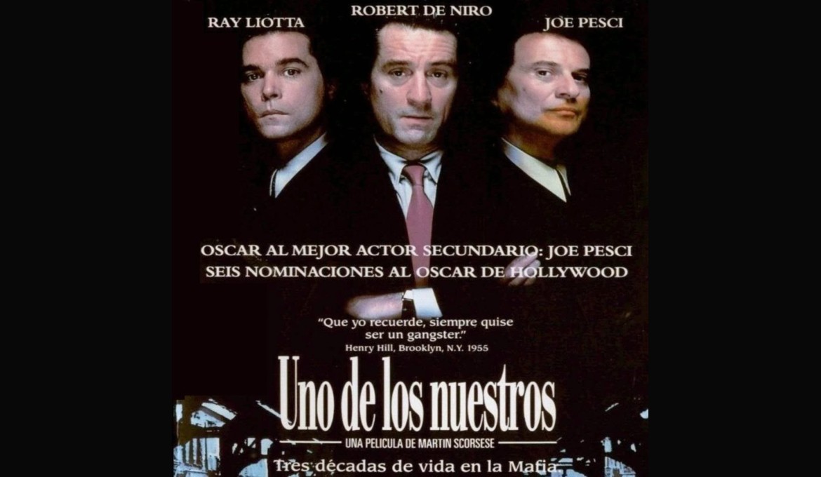 Dirigida por Martin Scorsese, se trata de una excelente película acerca de la mafia neoyorquina, extraída de la historia real del criminal Henry Hill. Aunque muchos hablan de que le aporta 'glamour' a la mafia (de lo atractivo que es ser un mafioso), es difícil negar el poder explosivo de esta cinta, que no ha perdido un ápice de interés muchos años después de su lanzamiento. El encanto de la mafia es precisamente de lo que trata la película. Henry Hill lo dice alto y claro al principio: "Desde que tengo memoria, siempre quise ser un gánster. Para mí, ser un gánster era mejor que ser presidente de los Estados Unidos".Unirse a la mafia local abre un mundo de posibilidades de trajes, coches de lujo, relojes de oro, mujeres hermosas... El elenco de la película es magnífico, particularmente Robert De Niro como el mentor de Henry Jimmy Conway y, en un giro desagradablemente jocoso, Joe Pesci como su compañero en el crimen, Tommy DeVito. DeVito muestra cómo al instante la buena vida puede dar paso a una horrible violencia, revelándonos una visión más sombría de la criminalidad.