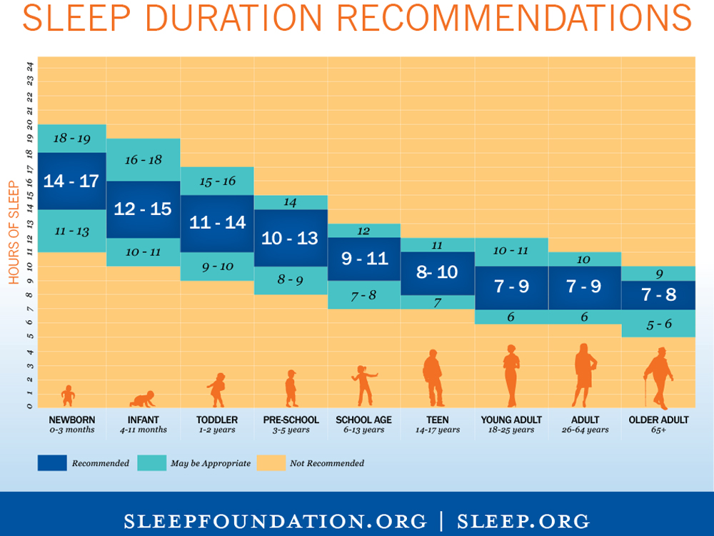 Las recomendaciones sobre las horas de sueño necesarias según la edad han sido respaldadas por expertos y entidades de salud de renombre. En 2015, un grupo de investigadores liderado por Lycia DonCarlos, de la Universidad Loyola de Chicago, estableció pautas basadas en una revisión exhaustiva de artículos científicos sobre el sueño. Estas recomendaciones han sido adoptadas por organizaciones como la National Sleep Foundation y han sido publicadas en la revista Sleep Health.
