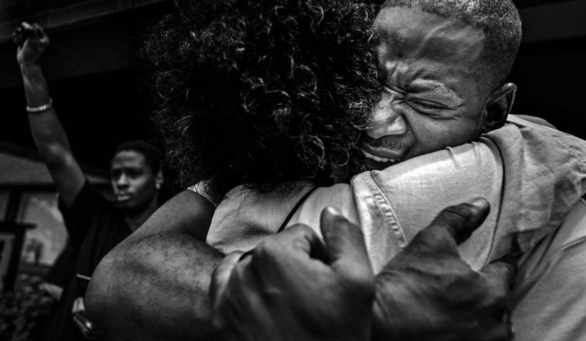 John Thompson es acogido en el pueblo de San Antonio, Minnesota, EE. UU., después de pronunciar un discurso en un mitin conmemorativo por su amigo Philando Castile, dos días después de que el oficial de policía Jerónimo Yanez fuese absuelto de todos los cargos del tiroteo de Philando Castile que tuvo lugar el 6 de julio de 2016.