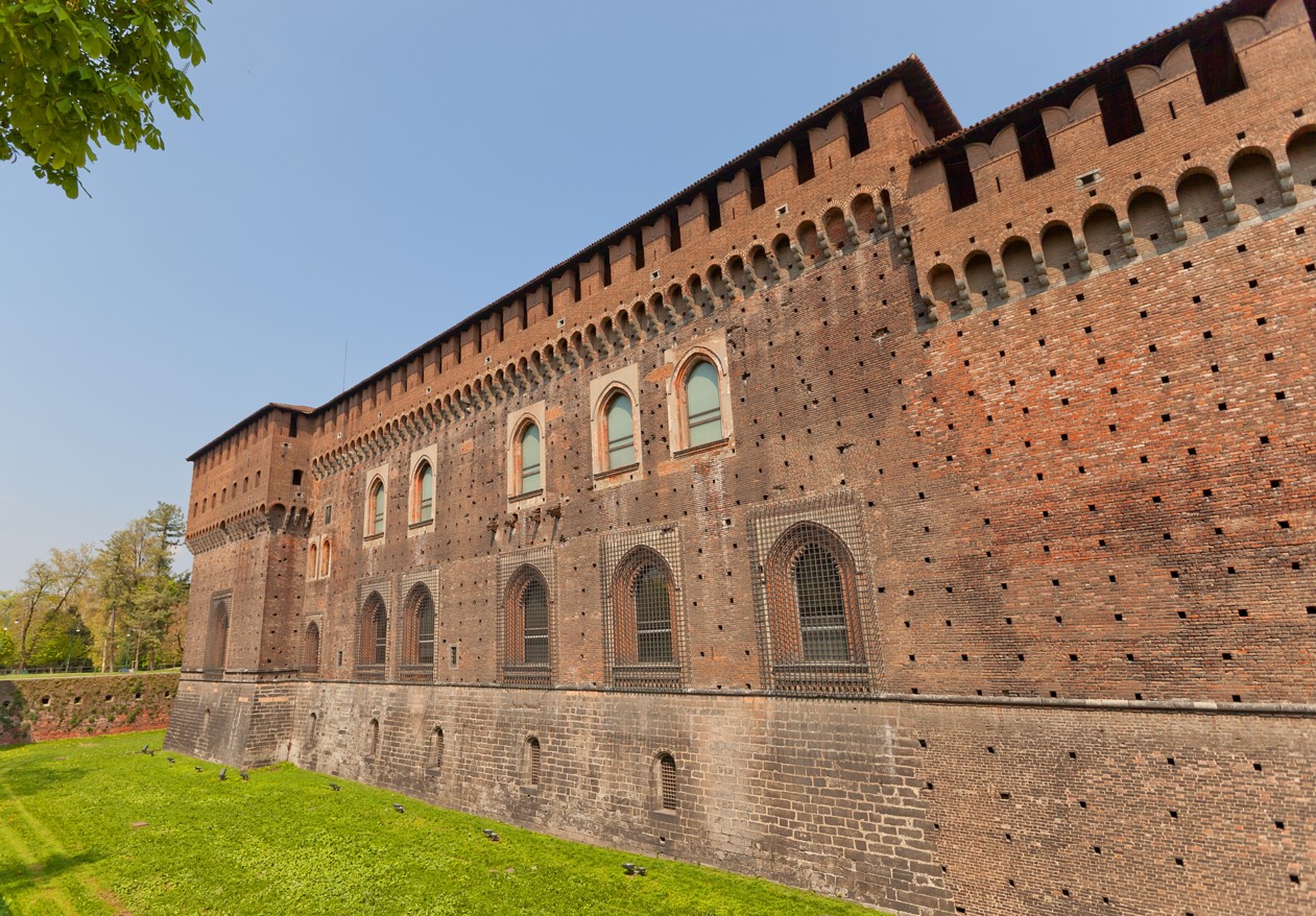 En 1482, Leonardo se mudó a Milán para ser pintor de la corte del duque de Milán, Ludovico Sforza. Vivió en el enorme castillo durante los 16 años de pasó aquí. Leonardo creó muchas de sus obras maestras mientras trabajaba para el duque, como la Virgen de las Rocas, La dama del armiño y el fresco de La Última Cena. También trabajó en otros campos durante este tiempo, incluida la planificación urbana, la ingeniería, la organización de festivales y la creación de su Trattato della pittura o Tratado sobre pintura. Como muestra de su agradecimiento, el duque le regaló a Leonardo un pequeño viñedo, en 1498, al otro lado de la calle de la iglesia donde Leonardo pintó La última cena. Podemos recorrer el Castillo de Sforza que contiene frescos originales de Leonardo en la Sala delle Asse y la inacabada Piedad Rondanini de Miguel Ángel.
