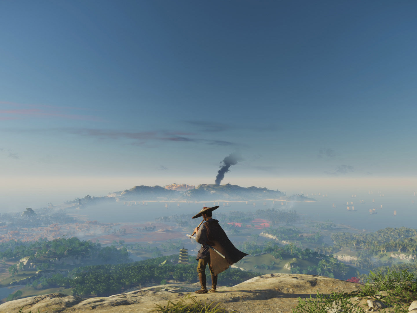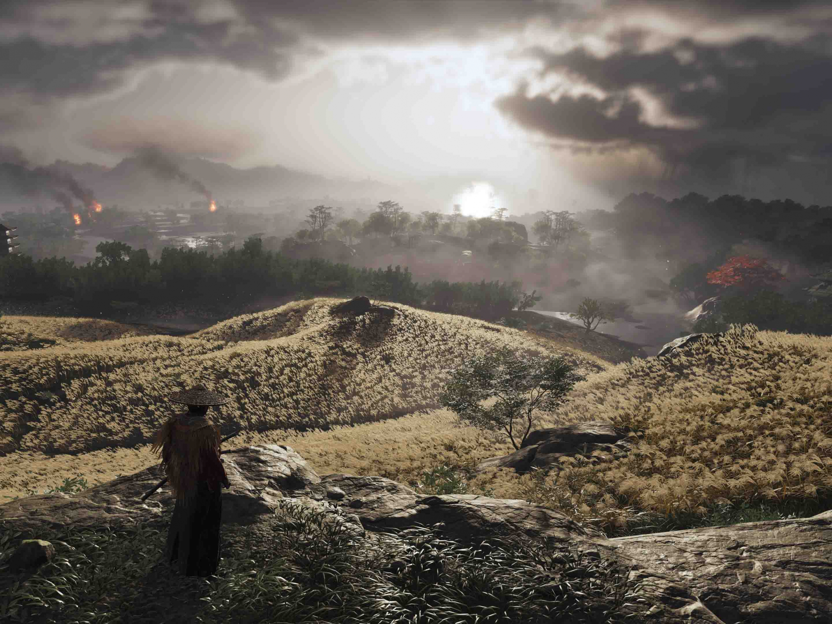 Un hilillo de humo gris que solo se ve cuando ya se está relativamente cerca puede ser señal de que alguien ha encendido una hoguera y si nos acercamos encontraremos pequeños campamentos de refugiados, pueblerinos, bandidos o mongoles. Una humareda más alta pero que mantenga el color gris suele ser señal de que procede del fuego de una o varias casas, por lo que si la seguimos llegaremos hasta una aldea (ocupada o no). Por último, las grandes columnas de humo negro implican un incendio provocado por los mongoles en alguno de sus saqueos y, por lo tanto, muchos enemigos a los que hacer frente si vamos en esa dirección.