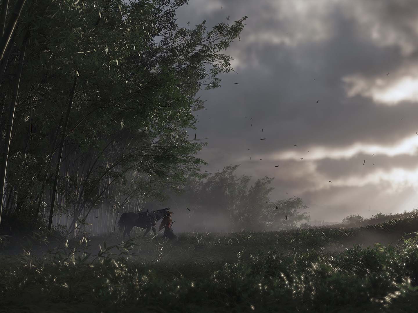 En una entrevista con GameSpot, Nate Fox, director narrativo del título, dijo que la forma en que afrontemos la historia afectará al clima de la isla. Cuanto más utilicemos el sigilo, el asesinato por la espalda y las armas del Fantasma, peor tiempo hará en Tsushima y por lo tanto el ambiente será mucho más oscuro y siniestro. Esta mecánica parecía hacer especial hincapié en las tormentas eléctricas y los rayos, que serían más abundantes cuanto menos honorable fuera nuestra forma de jugar.