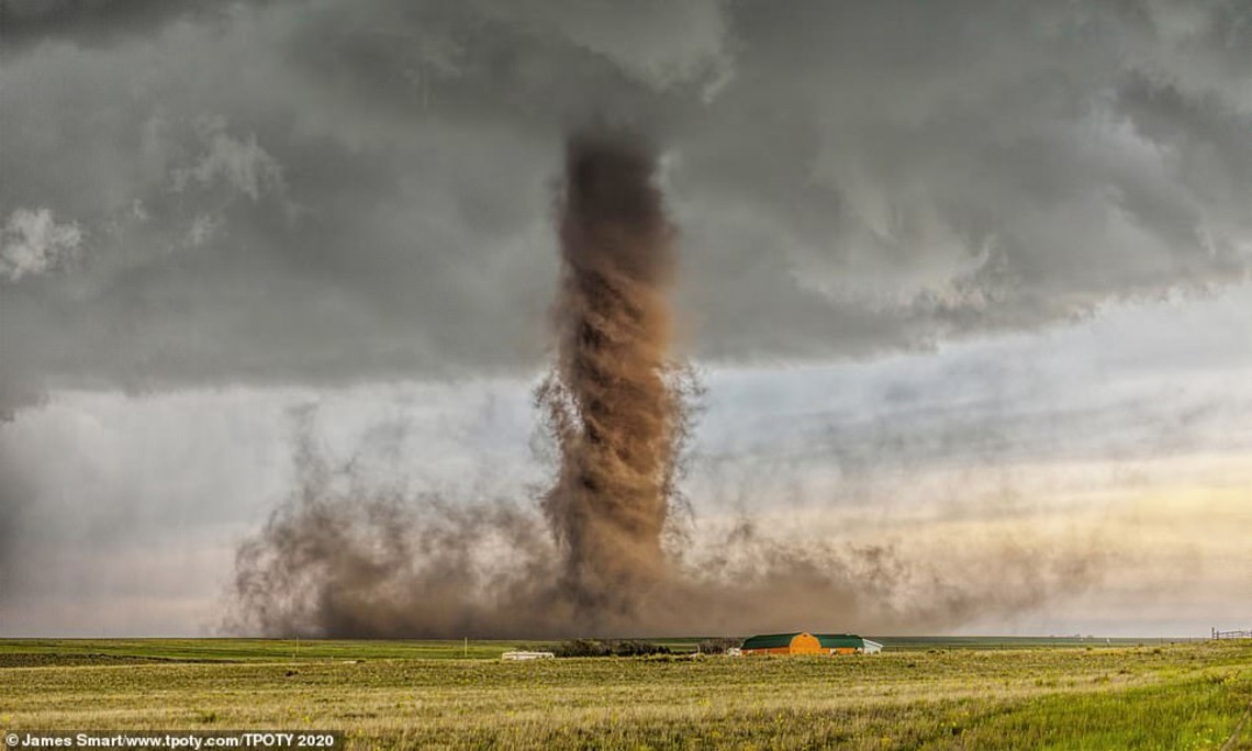 Esta increíble imagen del australiano James Smart, tomada en Simla, Colorado, ganó la "mejor imagen individual en un portfolio de elementos de paisaje y tierra". Smart dijo: "Este tipo de tornado de "broca" es un tornado anticiclónico poco común, que ocurre en alrededor del 2% de los tornados”.