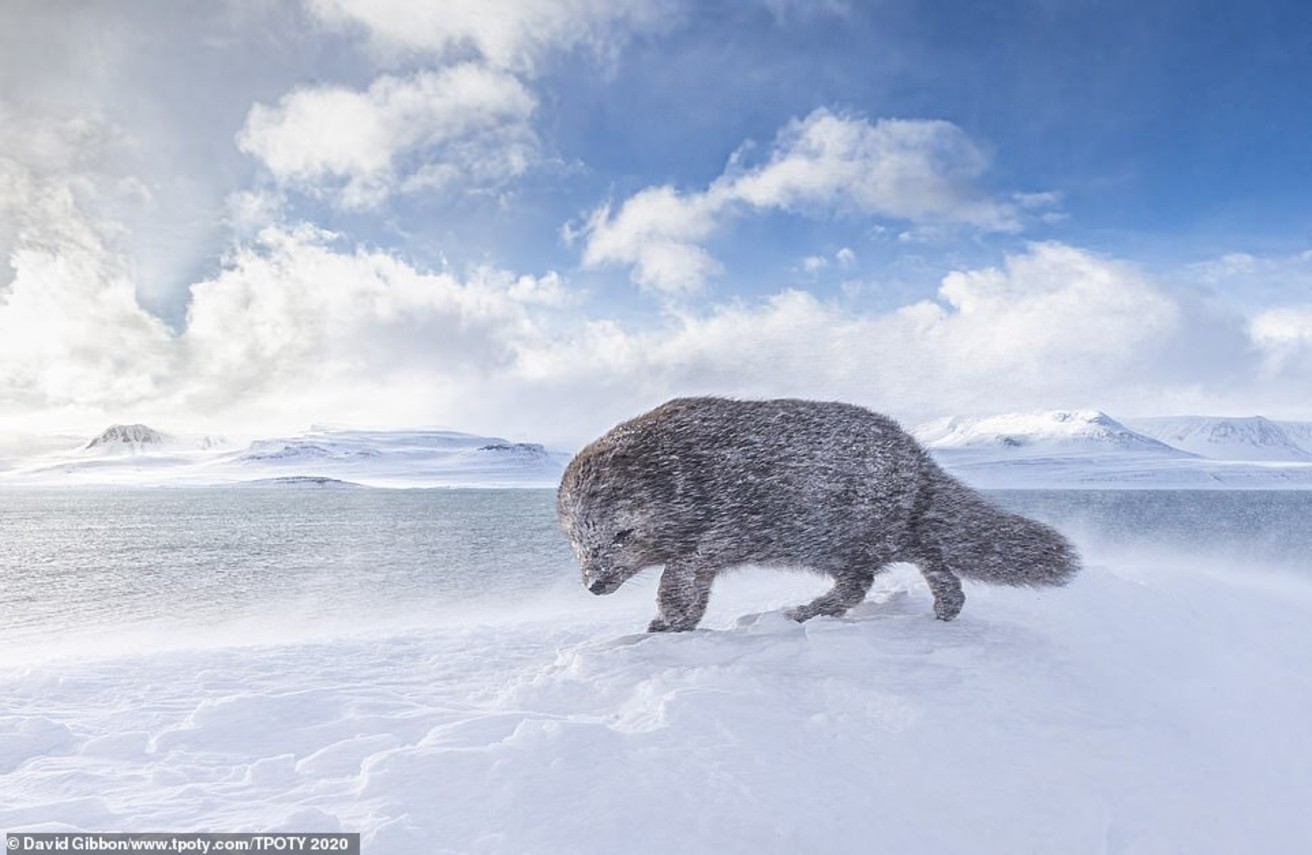 David Gibbon recibió una mención especial por esta fascinante imagen de un zorro ártico luchando contra los fuertes vientos en el noroeste de Islandia.