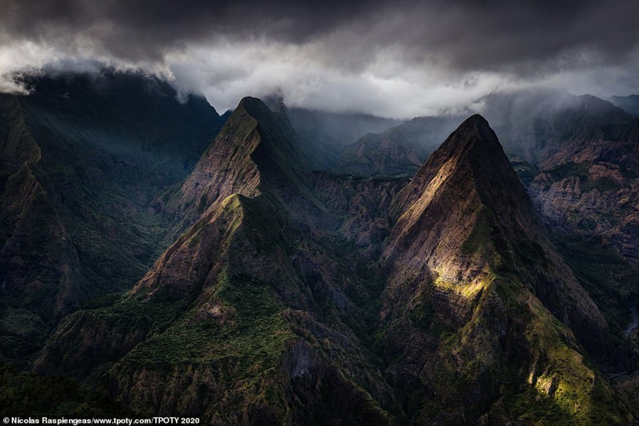 El fotógrafo francés Nicolas Raspiengeas fue muy elogiado en la categoría de portafolio de viajes, con esta imagen de la región de Mafate en la Isla Reunión, una de las que que cautivó a los jueces. Raspiengeas dijo: 'Los paisajes erosionados de la Isla Reunión son el resultado del vulcanismo combinado con fuertes lluvias. La región de Mafate es la más famosa de estos paisajes irregulares y, como la luz suele ser dura, tuve que esperar a una mañana donde las nubes daban un mejor ambiente '