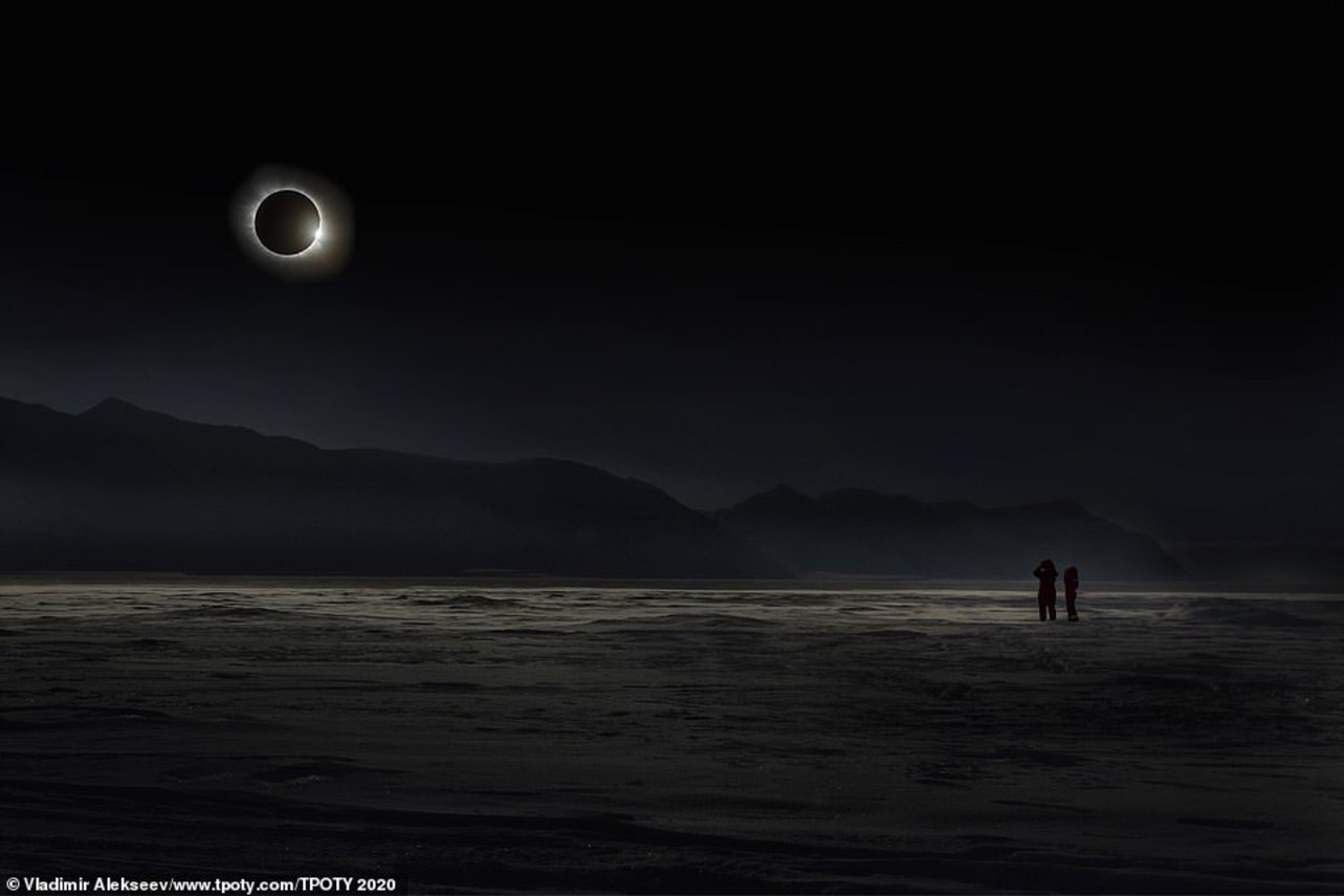 Una toma que Vladimir Alekseev hizo en Svalbard durante el eclipse solar total del 20 de marzo de 2015. Dijo: “Fue uno de los eventos astronómicos más importantes e impresionantes. Por la mañana, comenzó una ventisca y el cielo se cubrió de nubes. Pero, literalmente, una hora antes del eclipse, el clima mejoró. Y logré capturar este momento increíble '