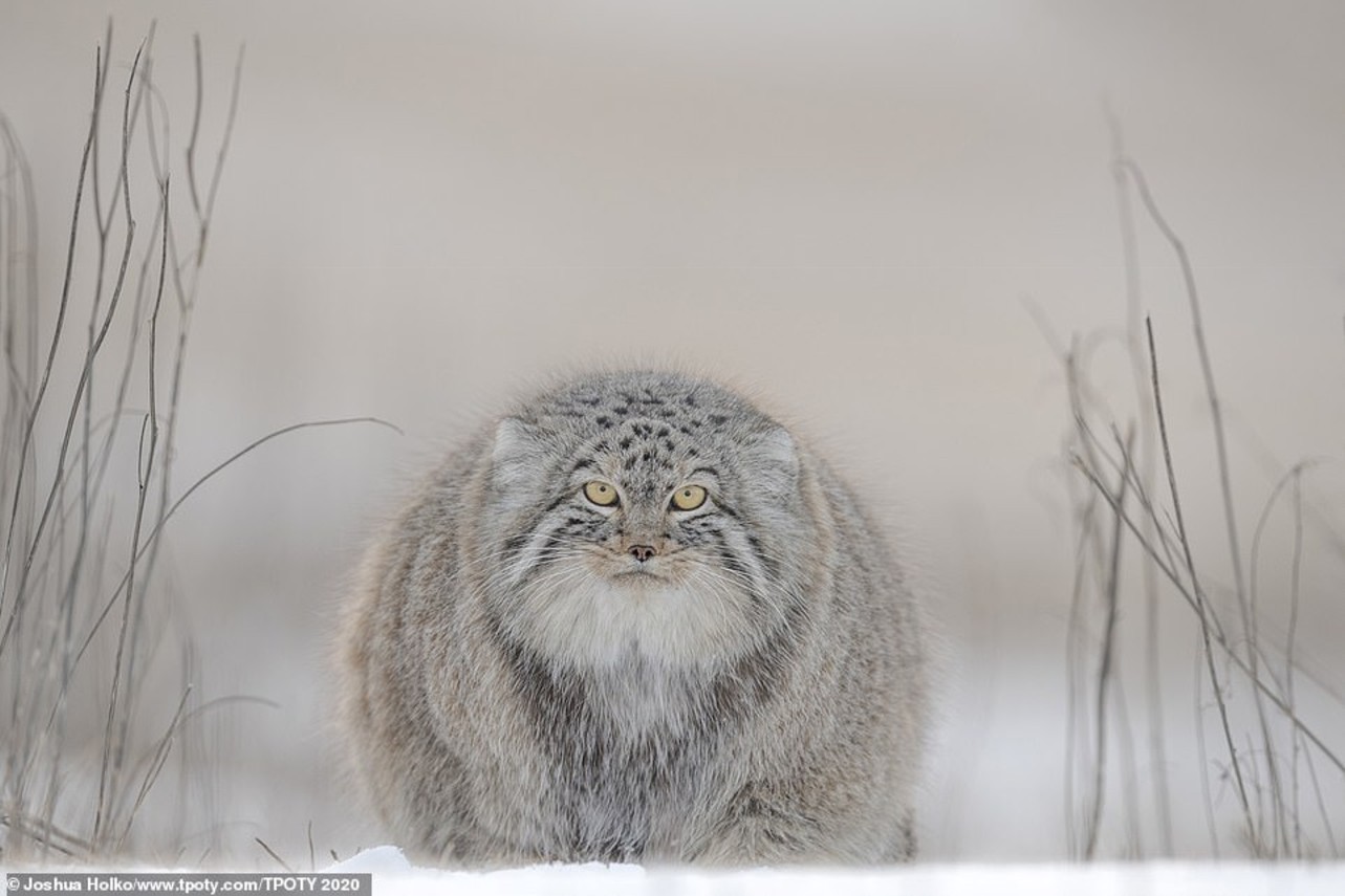 El australiano Joshua Holko recibió una mención especial por esta impactante imagen de un manul en Mongolia. Él dijo: 'Este mamífero se distingue instantáneamente por sus pupilas redondas y su cuerpo casi totalmente redondo. Con su abrigo de invierno, el felino es casi tan redondo como largo. Consciente de mi posición, miró con curiosidad y sin miedo me reposicioné lentamente para conseguir la composición que quería '.