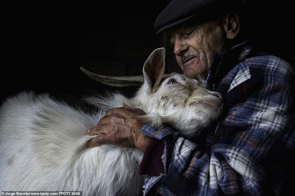 El segundo puesto en la categoría del portafolio 'gente del mundo' del certamen fue para Jorge Bacelar, de Portugal. Esta conmovedora imagen fue parte de su participación y también ganadora del 'premio de elección de la gente'. Muestra a Abilio Carteirista, un agricultor de Murtosa, Portugal. Bacelar dijo: 'Ahora con más de 80 años, pasa gran parte de su tiempo en el establo cuidando a sus animales'