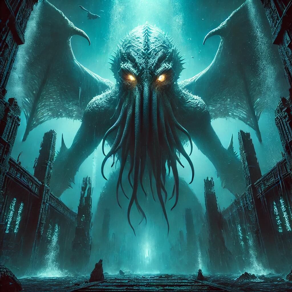 Cthulhu habita, muerto pero esperando retornar a la vida, en las profundidades del océano, en la ciudad sumergida de R’lyeh, y su descripción es huidiza, por cuanto muy pocos de los mortales que han llegado a verlo pueden soportar su visión lo suficiente como para hacer un resumen de sus rasgos. Se le llama “el de los múltiples tentáculos”, y el relato donde más claramente podemos hacernos una idea del mismo es La llamada de Cthulhu (1928), considerado el verdadero inicio de los mitos.
