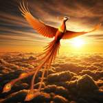 El ave Fénix surca los cielos como testimonio de la renovación sin fin a lo largo de lo siglos. Está en el firmamento de las leyendas como un ave mítica envuelta en llamas con poderes de eterna renovación. Esto significa renacer de sus propias cenizas como un símbolo de fortaleza inquebrantable en medio de la adversidad. Su historia trasciende el tiempo, inspirando cuentos de resiliencia, transformación y la infinita posibilidad de un nuevo comienzo. Esta visión majestuosa y mágica, envuelta en un resplandor dorado, suele capturar la imaginación cultural por su aire de misterio y esperanza.