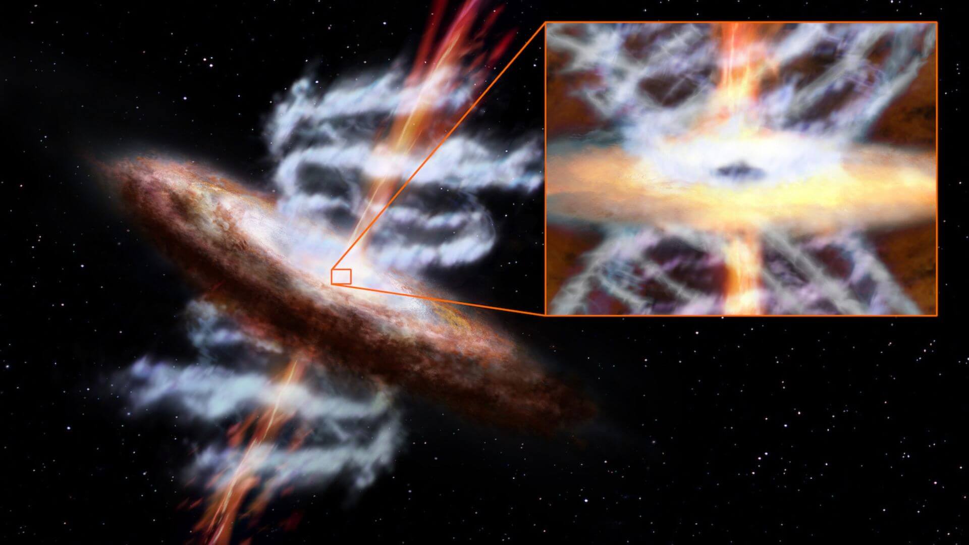 Los núcleos activos de galaxia es común que emitan radiación en forma de vientos o chorros de luz muy colimados. Estos son capaces de extenderse más allá de la región central donde se encuentra el agujero negro supermasivo, atravesando toda la galaxia y llegando incluso al espacio intergaláctico. En su trayecto, el impacto de estos vientos y chorros de luz con el gas que hay en la galaxia puede hacer que se prevenga la formación de estrellas (debido a que el gas destinado a formar estrellas es empujado fuera de las regiones de formación estelar) o al revés, que se generen nuevas estrellas (por compresión del gas). Debido a este control de los procesos de formación estelar, se cree que los agujeros negros supermasivos juegan un papel clave en el crecimiento y la evolución de las galaxias.