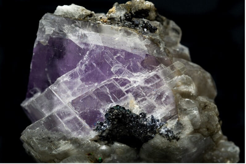 Otros minerales muy comunes en la naturaleza, como el cuarzo y algunas de sus variedades (por ejemplo, el ágata, el jaspe o el sílex), presentan enlaces semejantes en todas las direcciones y, por ello, su fractura es concoidea. Lo mismo sucede con la obsidiana (un vidrio volcánico silíceo) que es amorfo, es decir, carece de una disposición ordenada de sus componentes químicos.