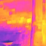 La termografía infrarroja es una técnica no destructiva y no invasiva que determina la temperatura aparente en la superficie de los materiales. Las áreas húmedas suelen tener una temperatura más baja debido a la evaporación del agua. En la imagen 4 se aprecia que las zonas de mayor humedad se localizan en las zonas con tonos azulados.