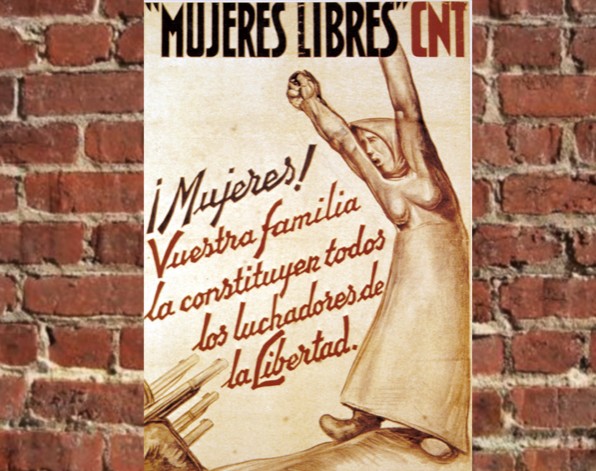 En este cartel de la CNT las protagonistas son las mujeres. En él se puede leer "¡Mujeres! vuetra familia la constituyen todos los luchadores de la Libertad".Especial: Guerra Civil Española©Gtres