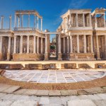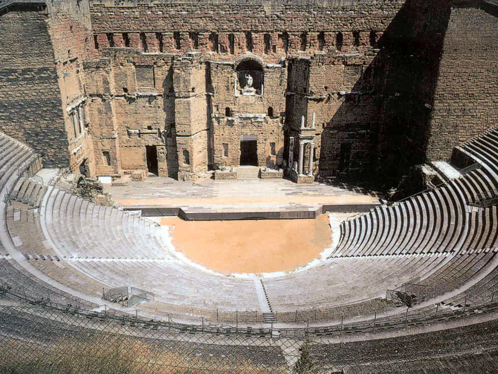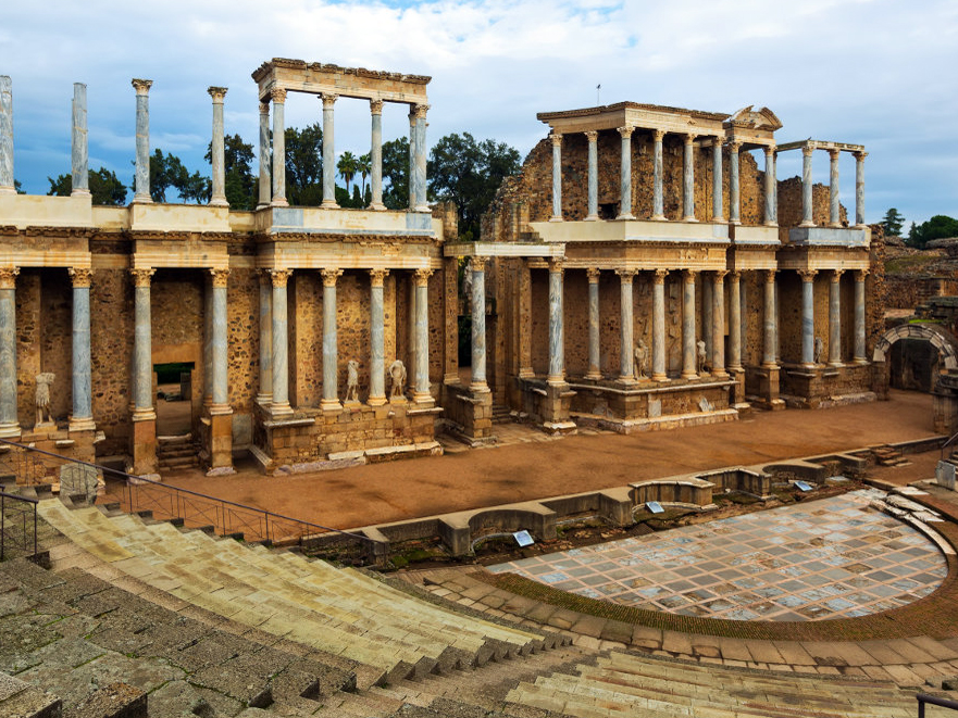 El teatro romano de Mérida erigido por el gobierno romano en la colonia Augusta Emerita. Su construcción fue promovida por el cónsul Marco Vipsanio Agripa y, según una fecha inscrita en el propio teatro, su inauguración se data hacia los años 16-15 a.C.En su origen este edificio con capacidad para 6.000 espectadores, estaba compuesto por un graderío semicircular de hormigón romano revestido de granito, la escena para las actuaciones, con un pavimento de mármol, además de tres puertas y varias estatuas.Hoy en día, este espacio que acoge cada verano las representaciones del Festival de Teatro Clásico de Mérida. Una cita que devuelve cada verano todo el esplendor y la función original a este edificio romano que actualmente tiene capacidad para albergar 3.000 personas.