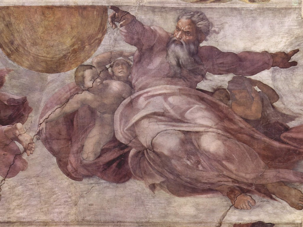 La representación de Dios en la bóveda de la Capilla Sixtina es una de las más poderosas y dinámicas de toda la obra. Miguel Ángel optó por mostrar a Dios como una figura majestuosa y enérgica, rodeada por ángeles y envuelta en un manto esférico que simboliza su poder y autoridad. Esta representación contrasta con las imágenes más tradicionales de Dios en el arte medieval, donde a menudo se le mostraba como una figura estática y distante.