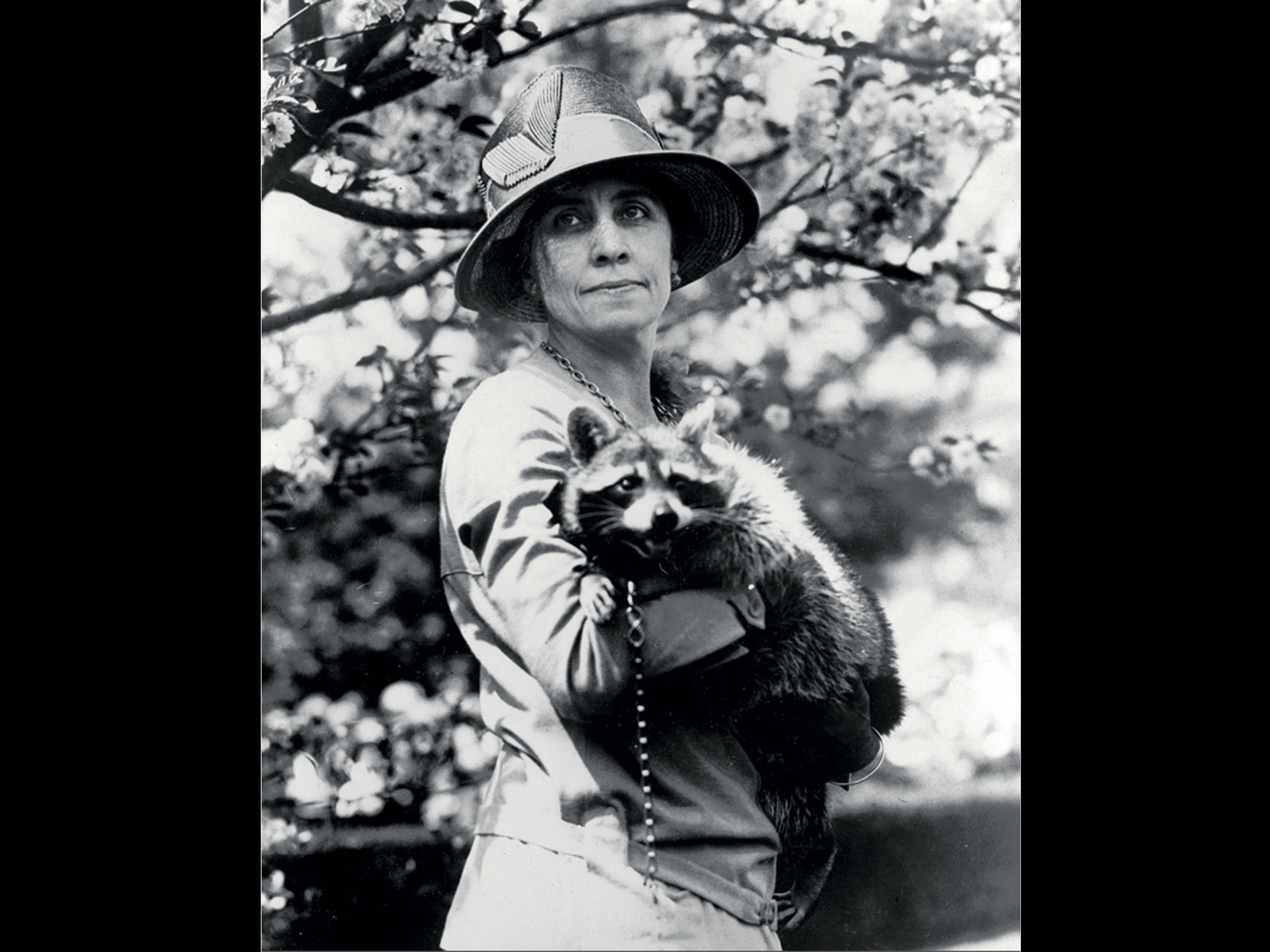 Los jardines de la Casa Blanca tuvieron a una mascota muy especial durante la presidencia de Calvin Coolidge. Entre 1923 y 1929 fue habitural ver a la primera dama, Grace Coolidge, paseando a su mapache Rebecca.
